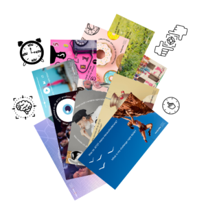 Sie können das Kartenset zudem direkt nach der Bestellung digital im 16:9 Format als PDF und JEPG  downloaden – und sofort digital loslegen. Auf Kollaborationboards, als Bildschirmhintergründe, in Powerpoint, in Keynote, in Zoom als virtuelle Hintergründe …